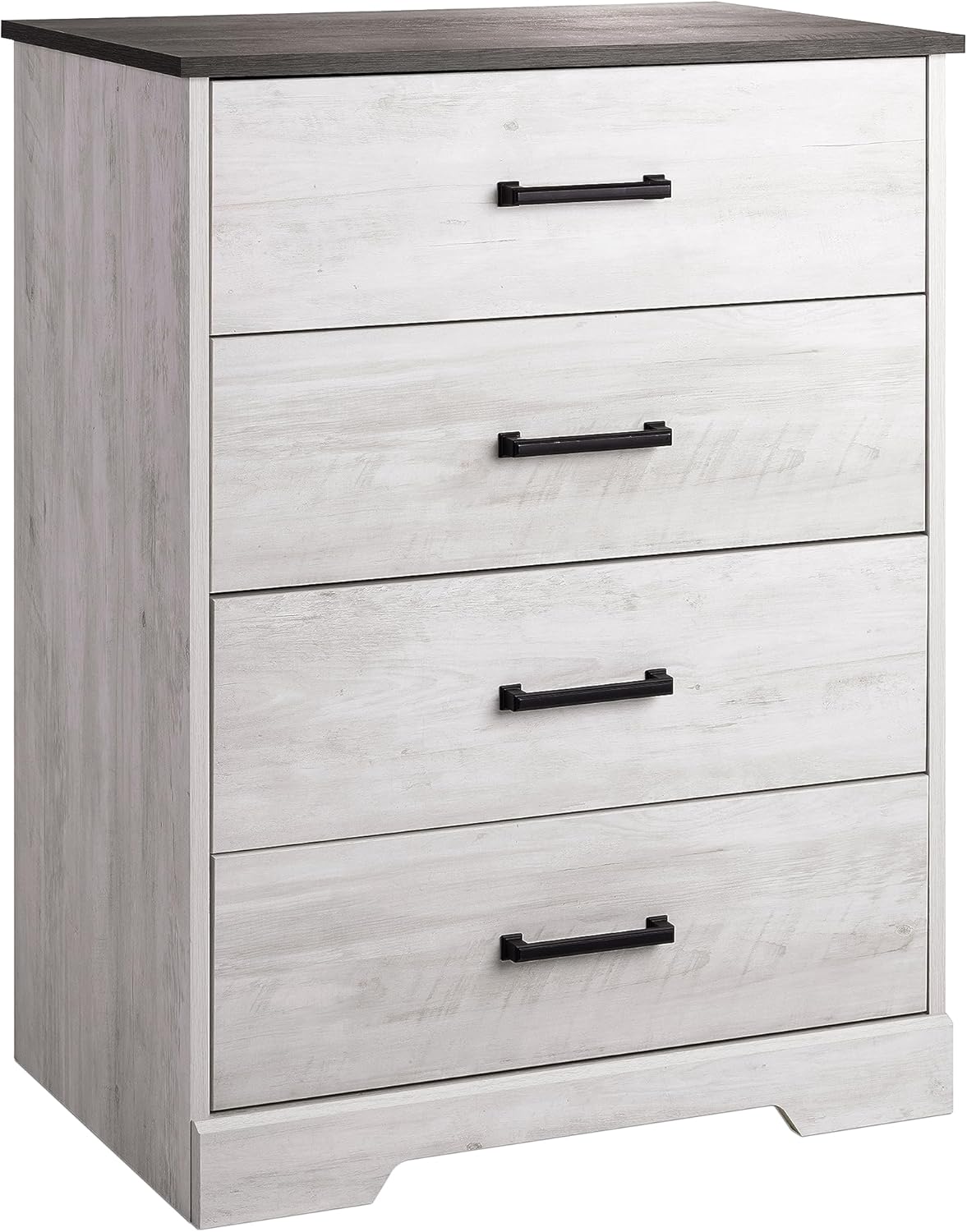 About this item RUSTIC DRESSER CHEST: Features 4 smooth-gliding drawers with real wood pine sides that extend far out for easy access while maintaining safety, providing ample space for clothing and other belongings CHARMING FARMHOUSE STYLE: Boasts a 2-tone, whitewash finish with semi-matte black pulls and a rustic gray planked oak grain top to complement […]