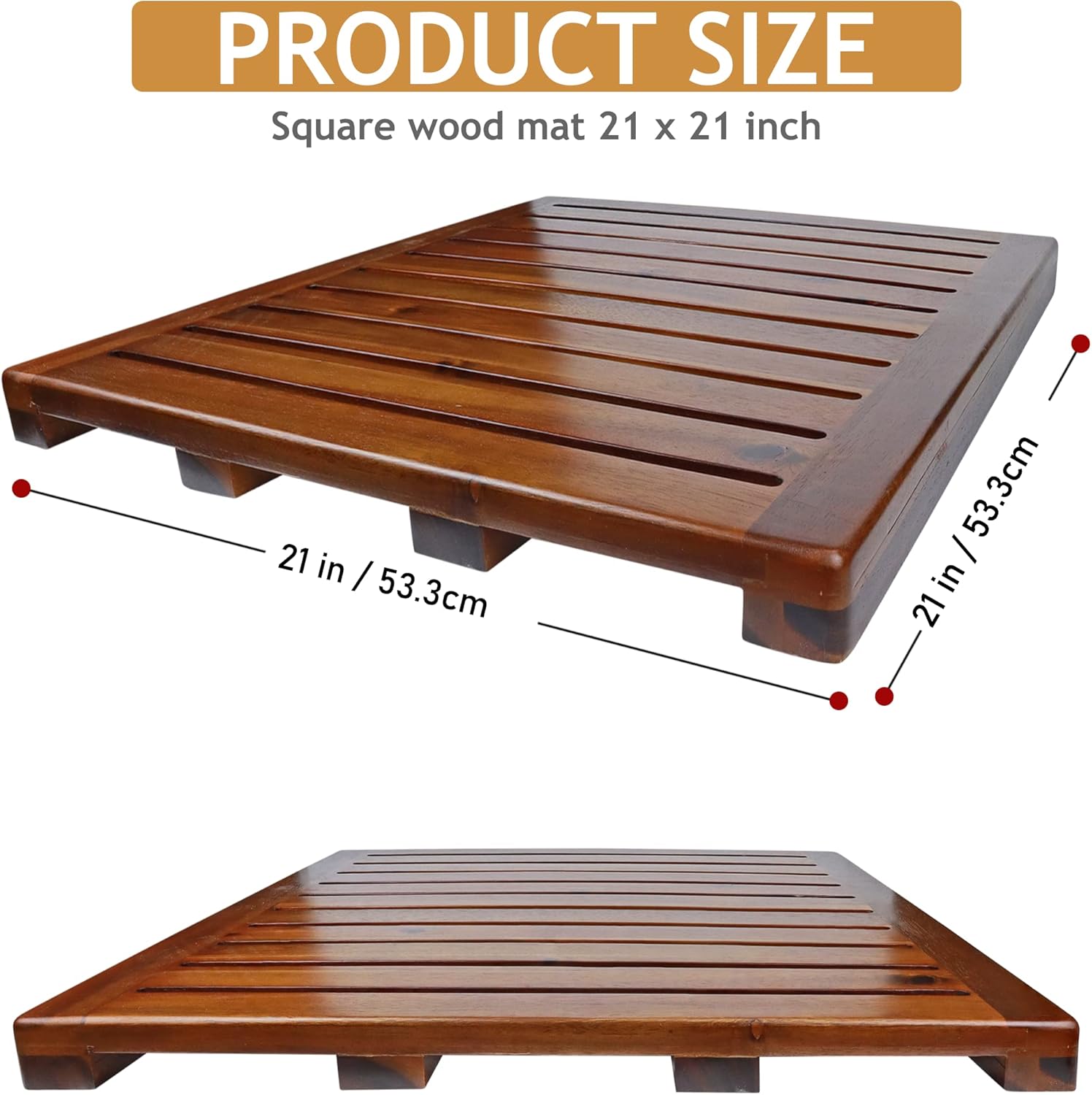Acacia Wood Shower Mat 21×21 Inches by , Luxury Bath Mat Non Slip for Bathroom Bathtub Shower Spa Garden Home, Wooden Floor Mat Square Large for Outdoor and Indoor