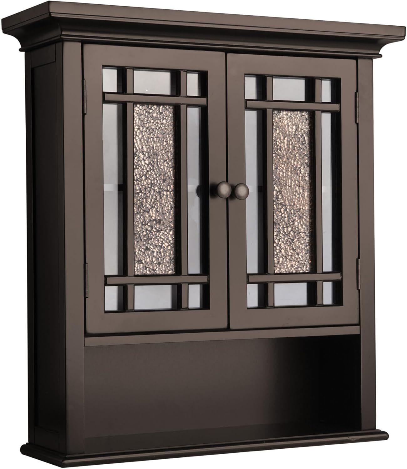 Over The Toilet Removable Wall Medicine Cabinet with 1 Fixed and 1 Adjustable Shelves 3 Storage Spaces 2 Glass Mosaic Doors and Rubbed Bronze-Finished Knobs, Dark Espresso